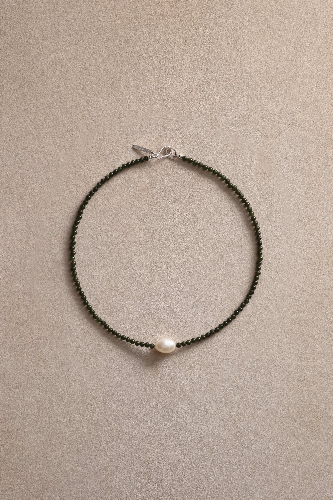 • Freshwater pearl/jade beads/sterling silver s-hook closure