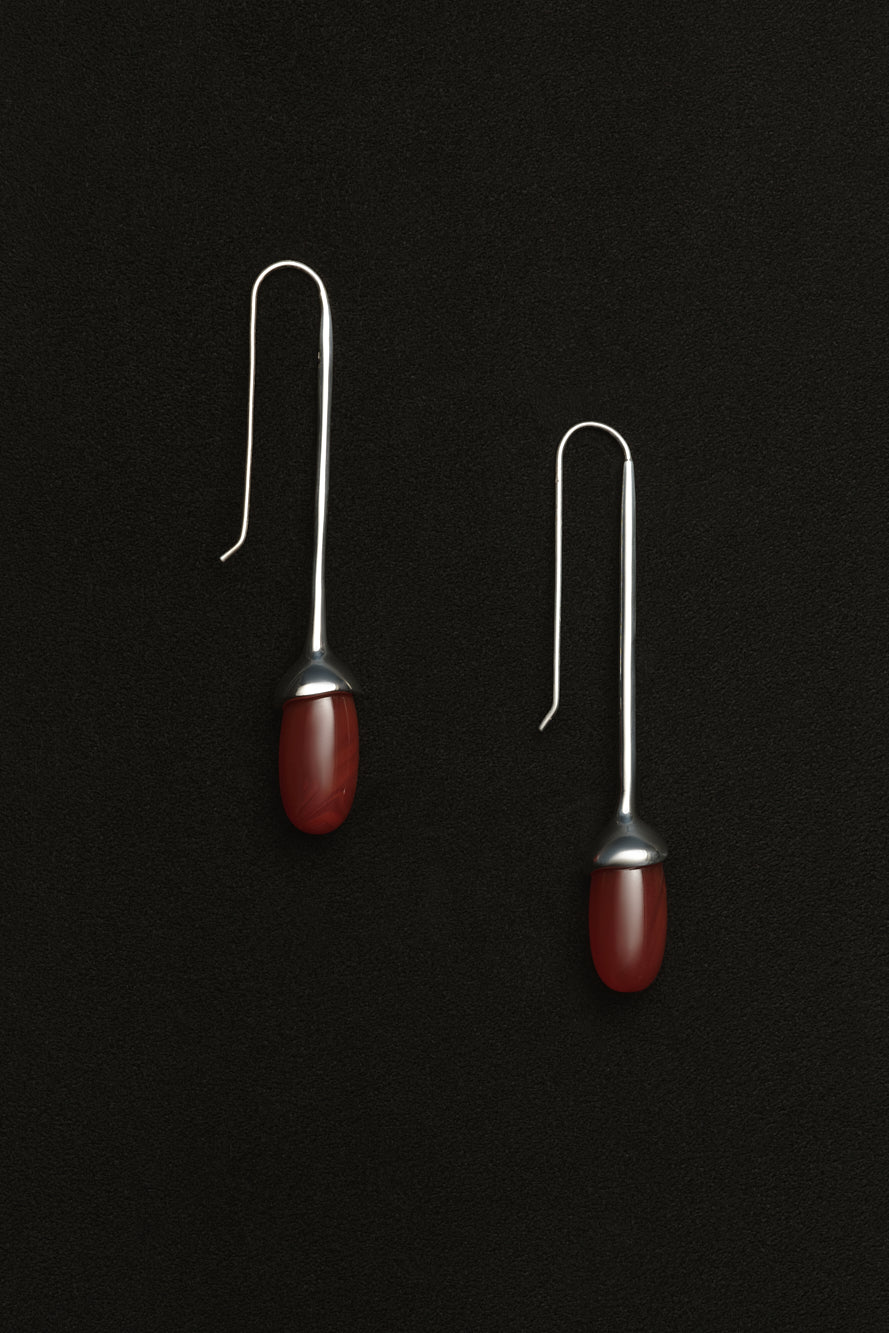 Pair of sculptural drop earrings featuring carnelian stone and sterling silver.