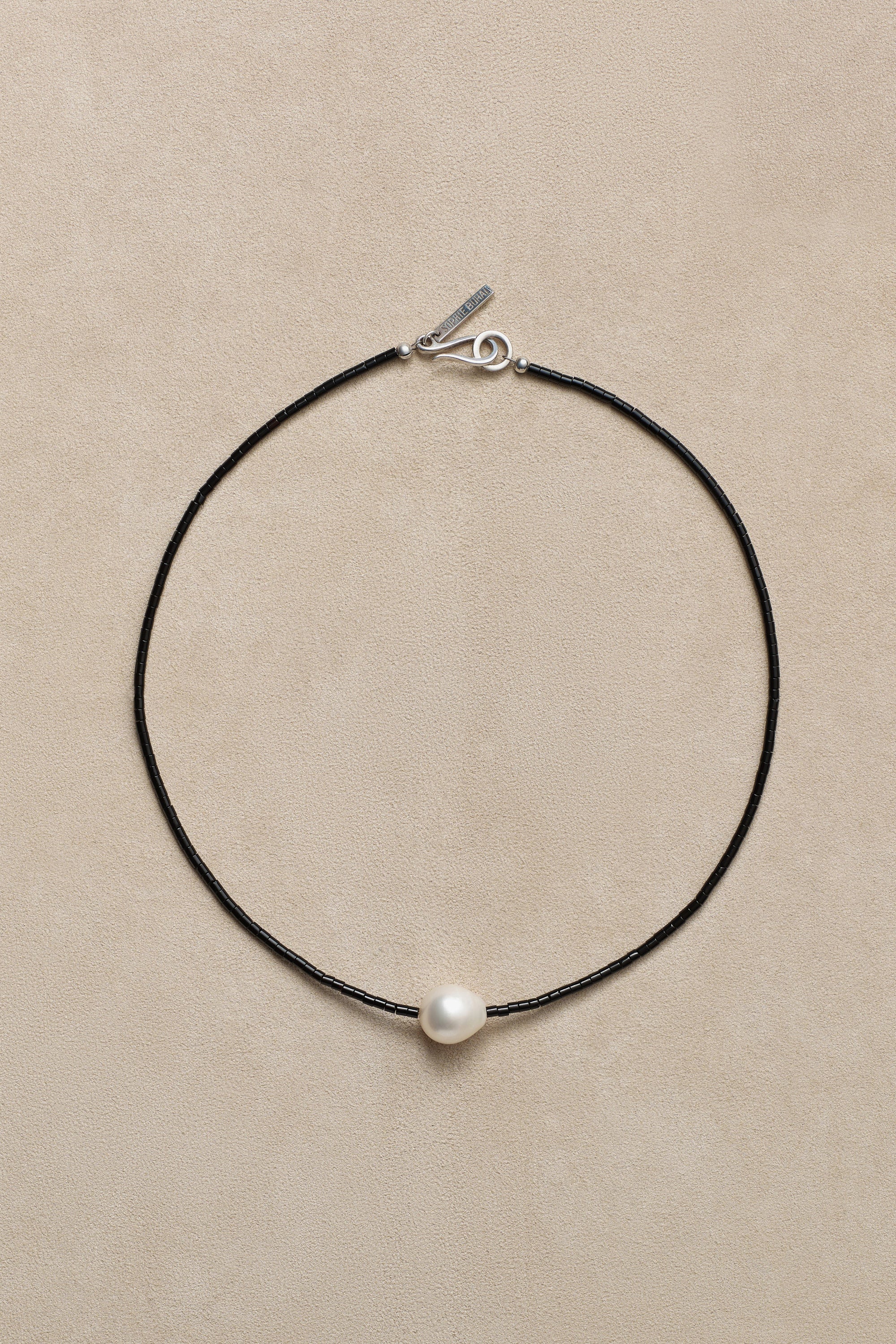 Elegant agate seed bead choker featuring a freshwater pearl.
