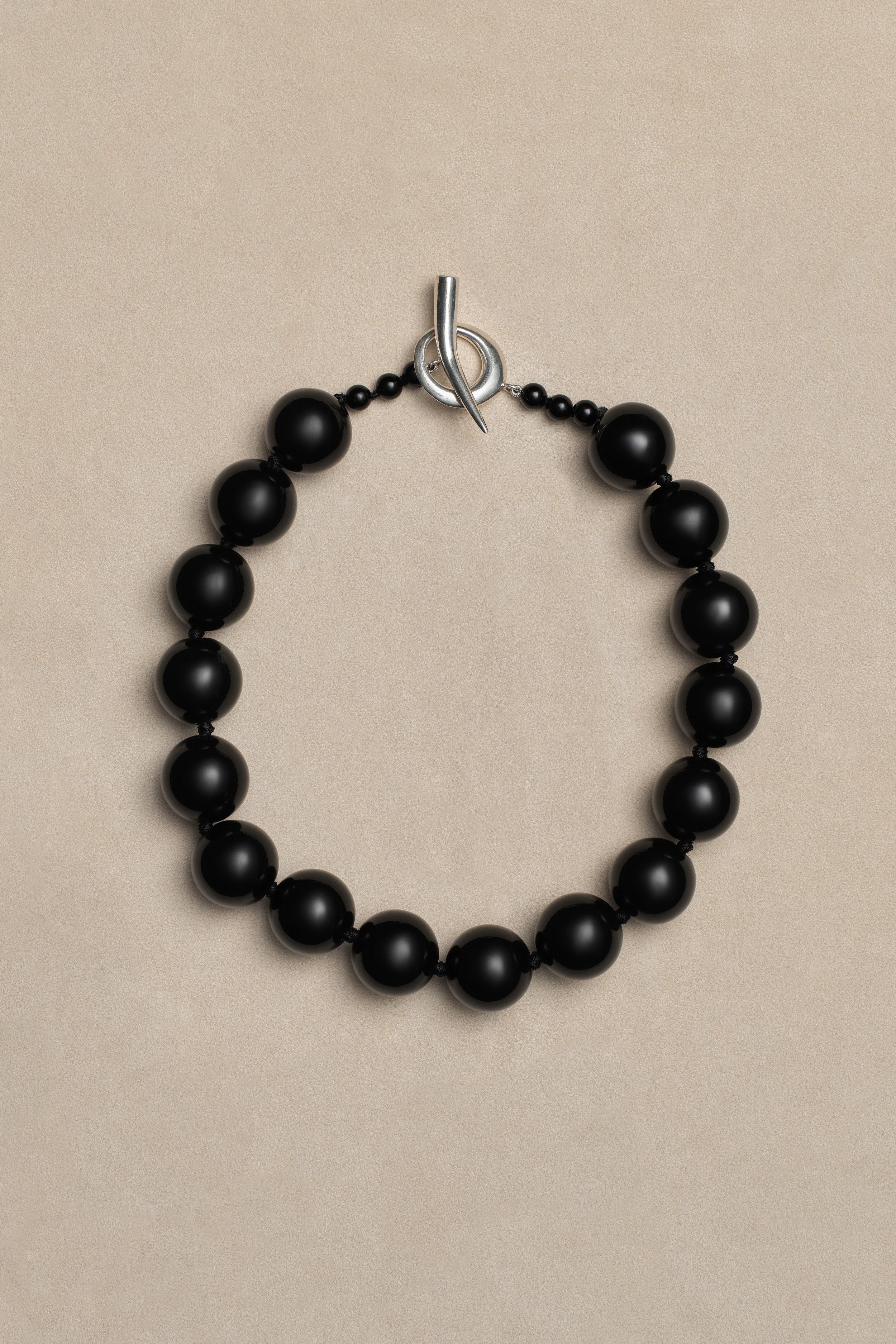Fitted collar featuring brilliant 20mm onyx beads and our signature sterling silver toggle closure. Sits above the collarbone and adorns the neck beautifully.