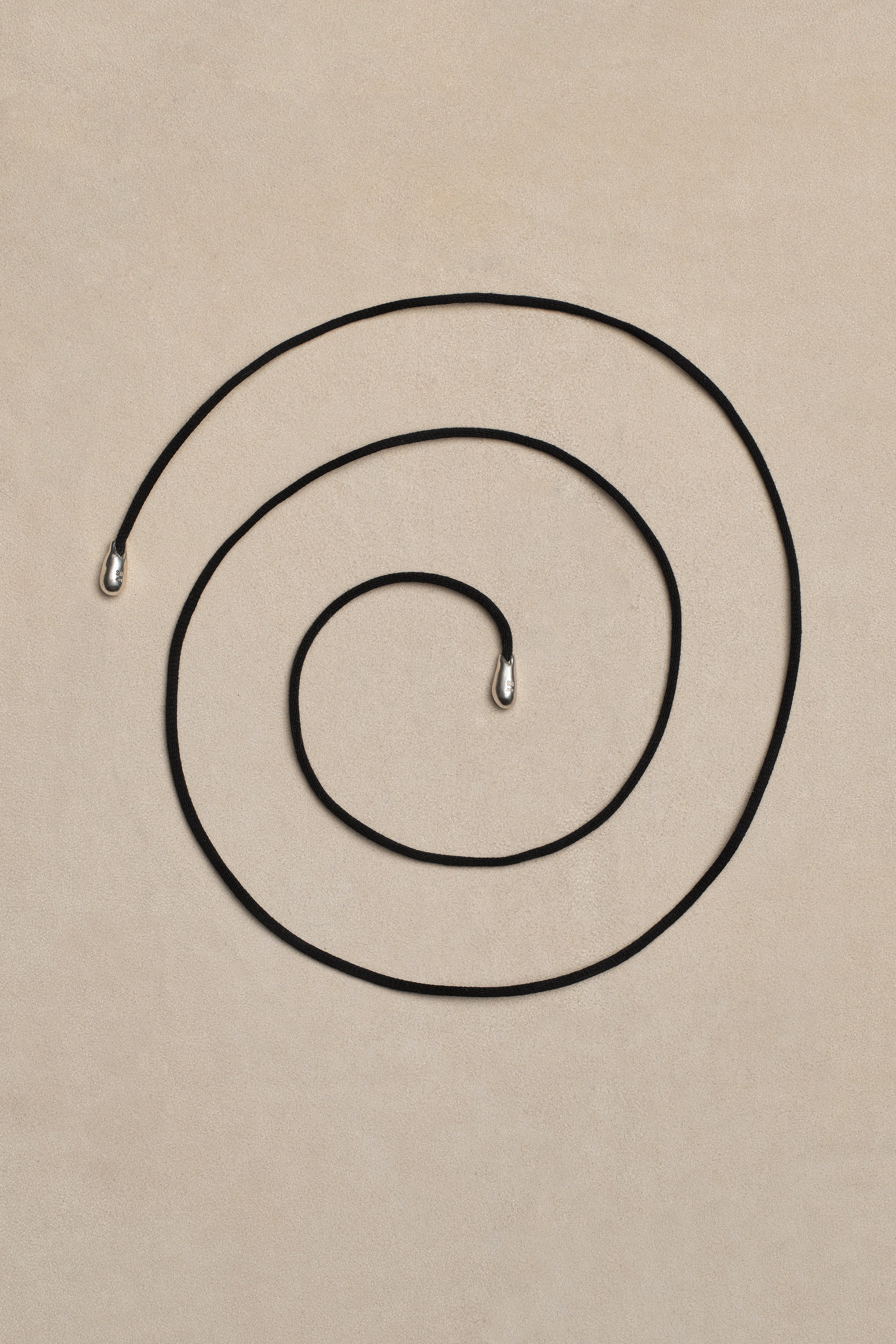 Cord necklace with sterling silver teardrop endings. Available in black and brown.