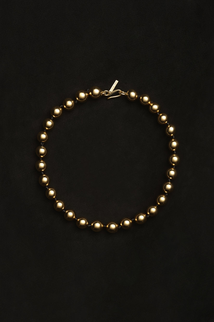An alluring fitted collar featuring high-polish 18k gold vermeil beads adorned with silk knots and our subtle 'S' clasp closure. Sits beautifully above the collarbone.