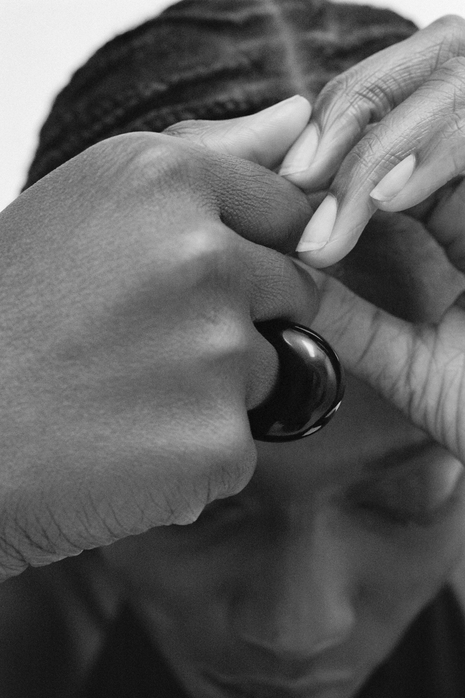 An iteration of our classic Onyx Donut Ring that is smaller. A simple yet elegant ring made with natural onyx.