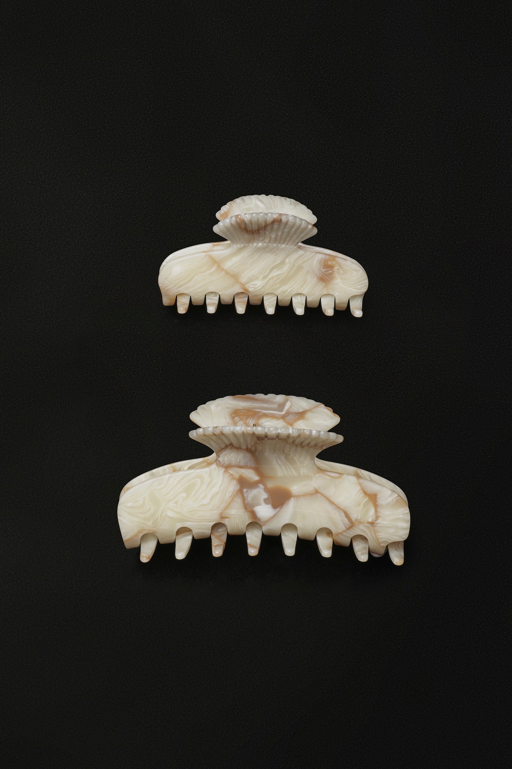 A claw clip inspired by the ridges of a shell. Made from acetate.