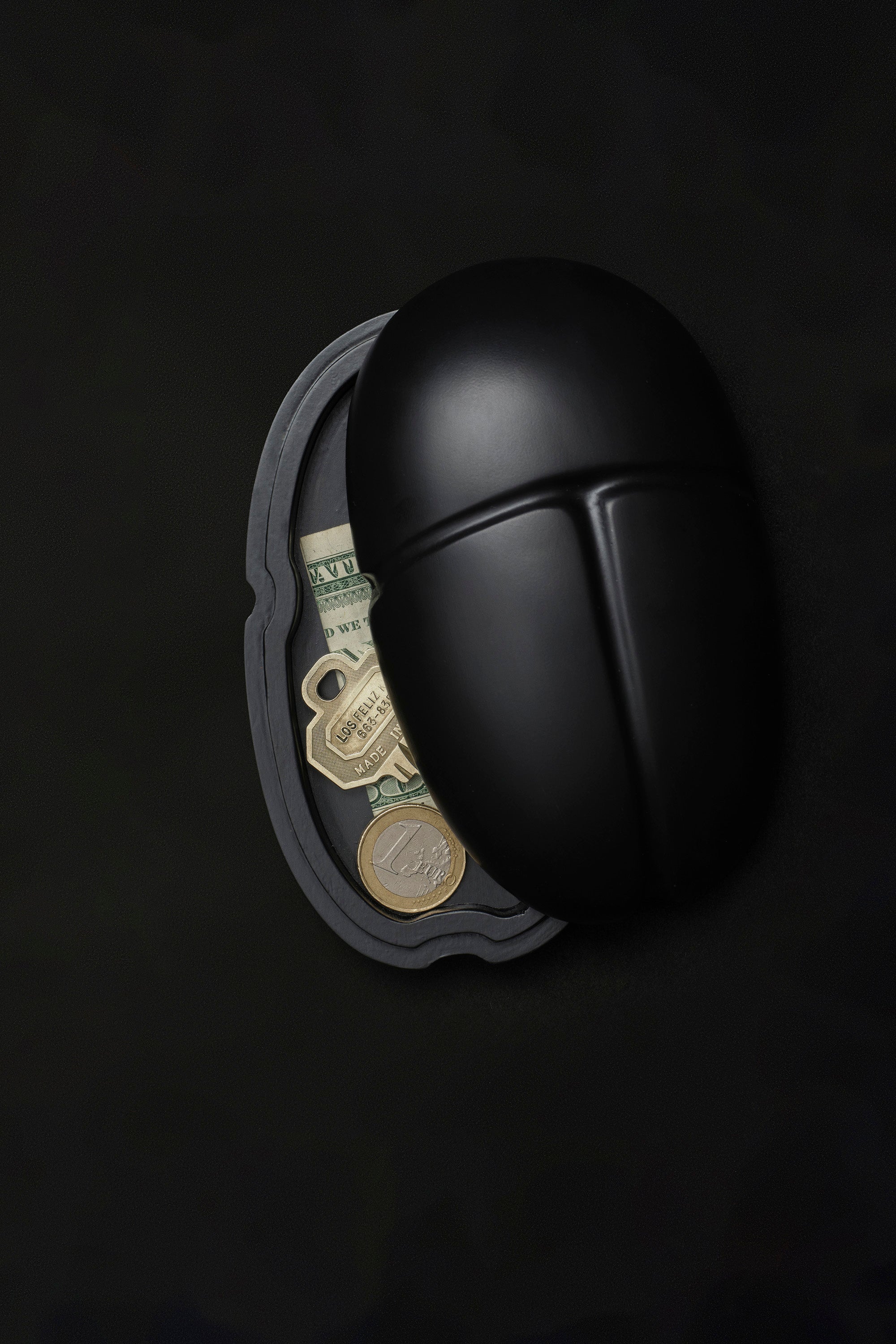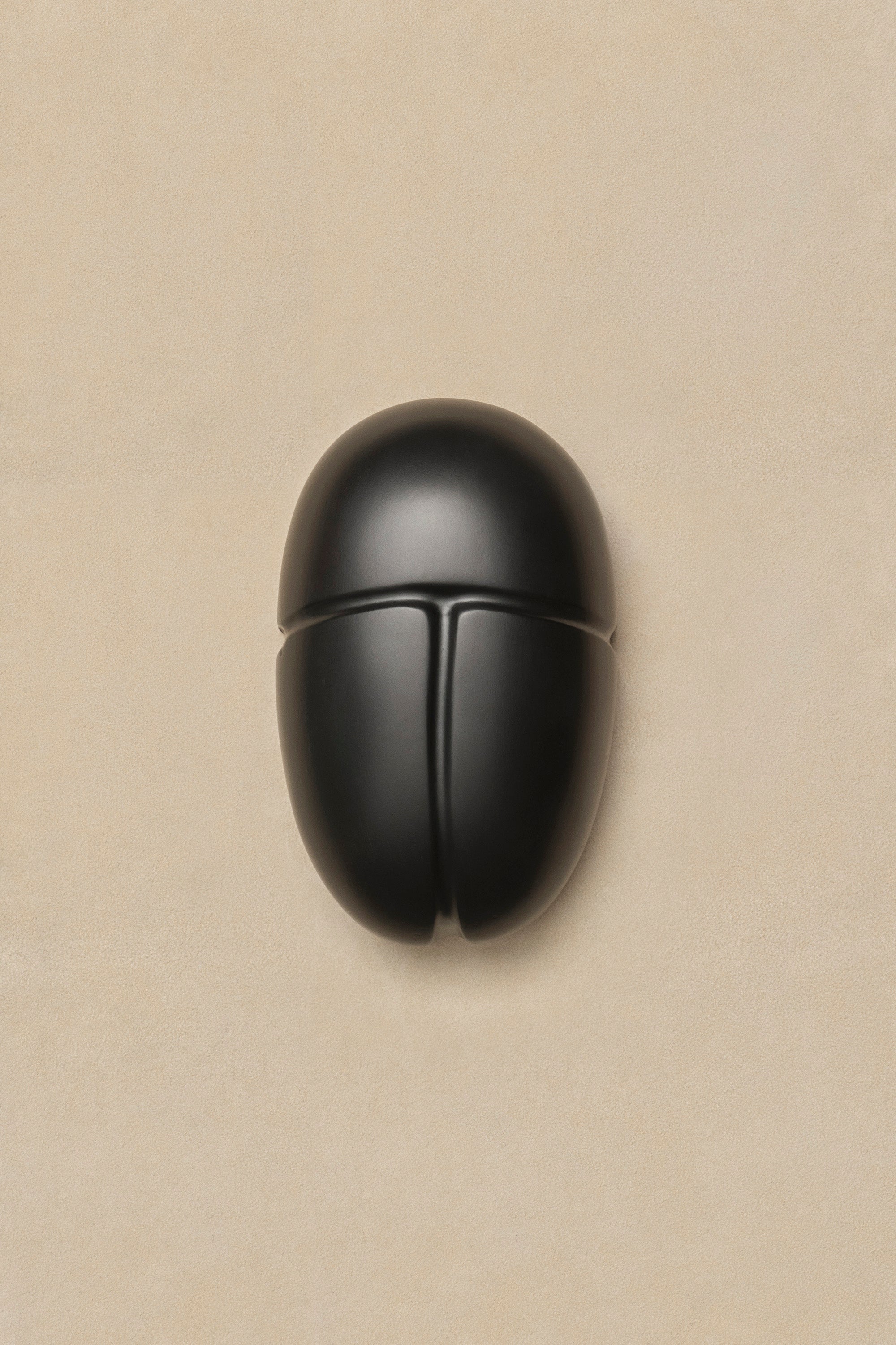 A hand-carved maplewood and black lacquer vessel in the form of a scarab. For small keepsakes.