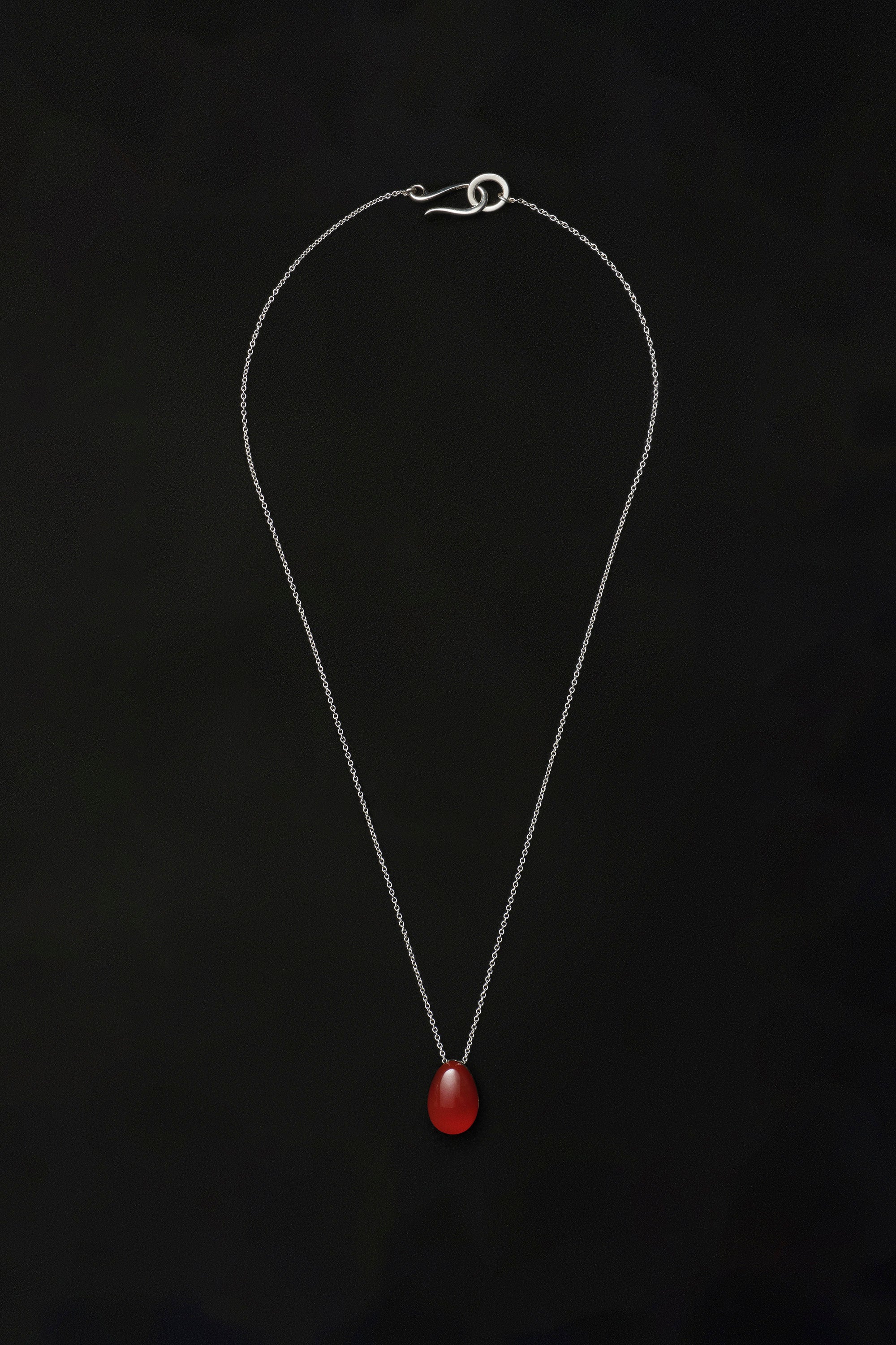 A delicate, hand-carved carnelian egg pendant.