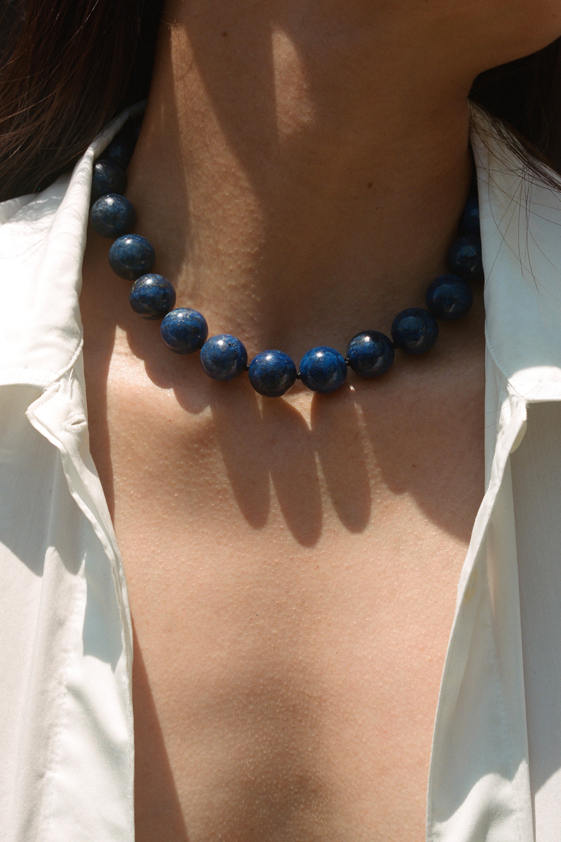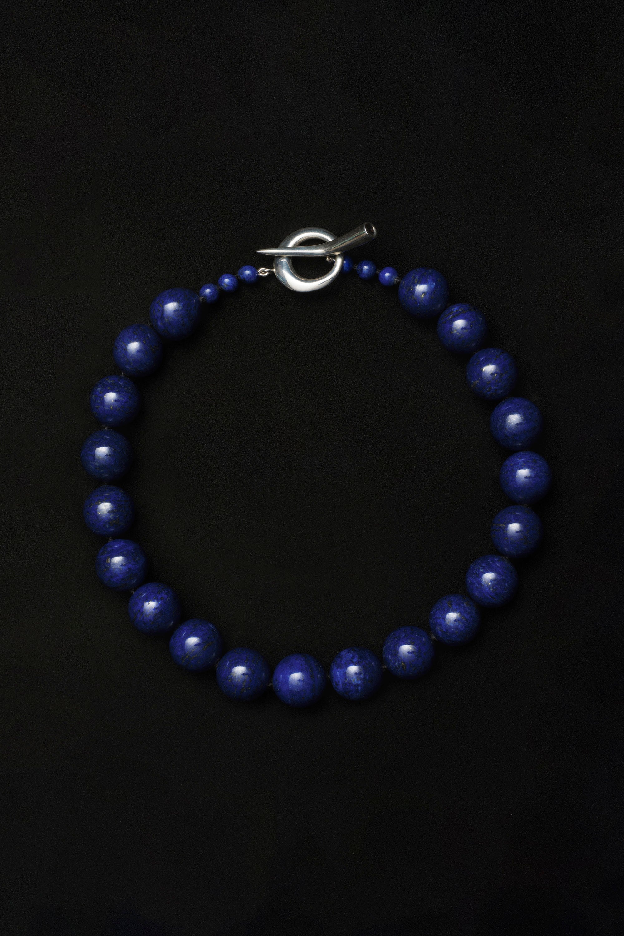 Fitted collar featuring brilliant 16mm beads. Adorns the neck beautifully. Signature toggle closure.