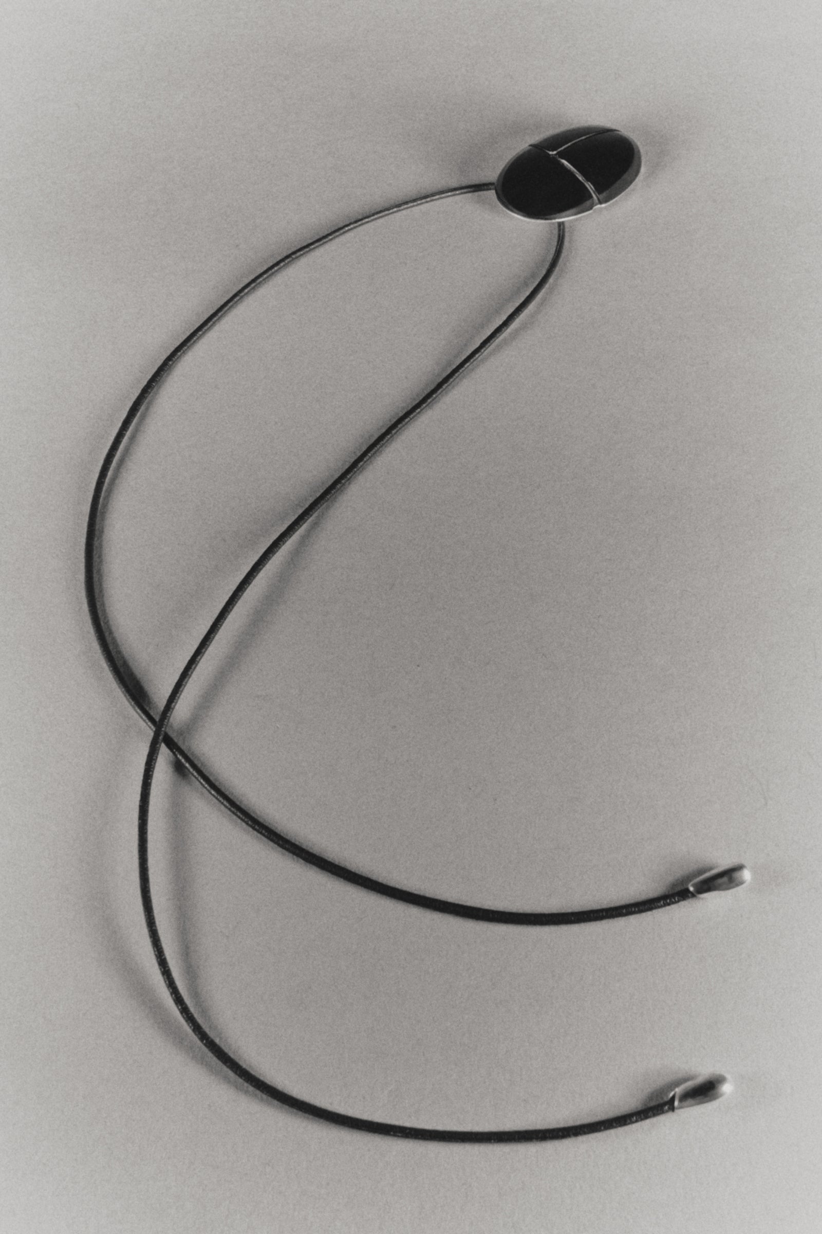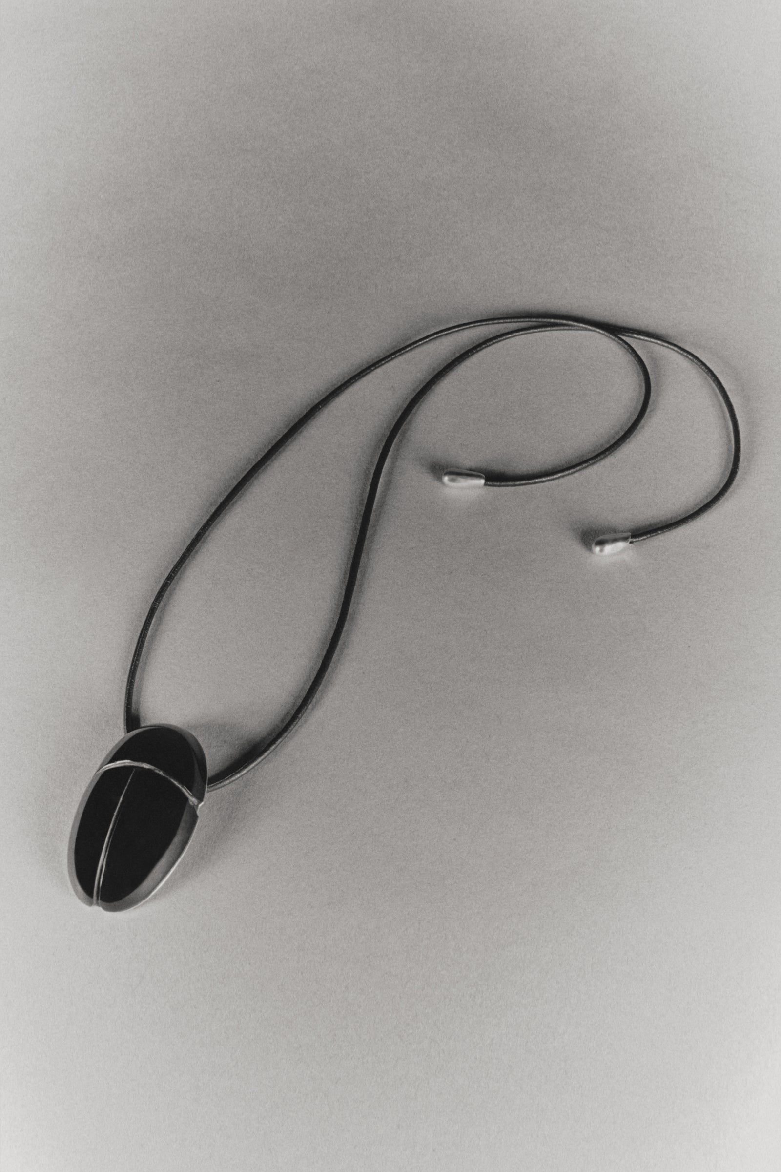 Bold pendant necklace with a carved onyx scarab on an adjustable vegan leather cord.